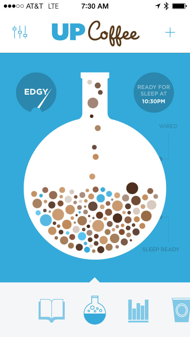 See how your caffeine levels change throughout the day as you down espressos, energy drinks and even chocolate. UP Coffee knows when you’re WIRED and how long it will take you to become SLEEP READY.