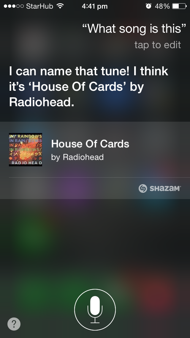 Shazam, the music identification service, is now ingrained in Siri’s make-up, and if you wish to identify a song using the voice assistant, simply use the command “What’s that song playing?” ” what song is this ? ” ” what is this tune ? ” “What is currently playing?”  “Name that tune.”